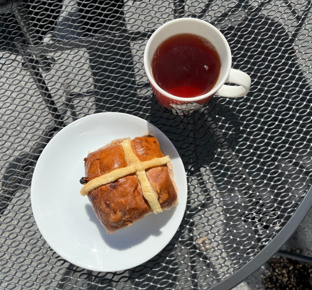 There is a nice paved area to sit in the sun, and we enjoyed our first hot cross bun of the season sitting in the sun today.