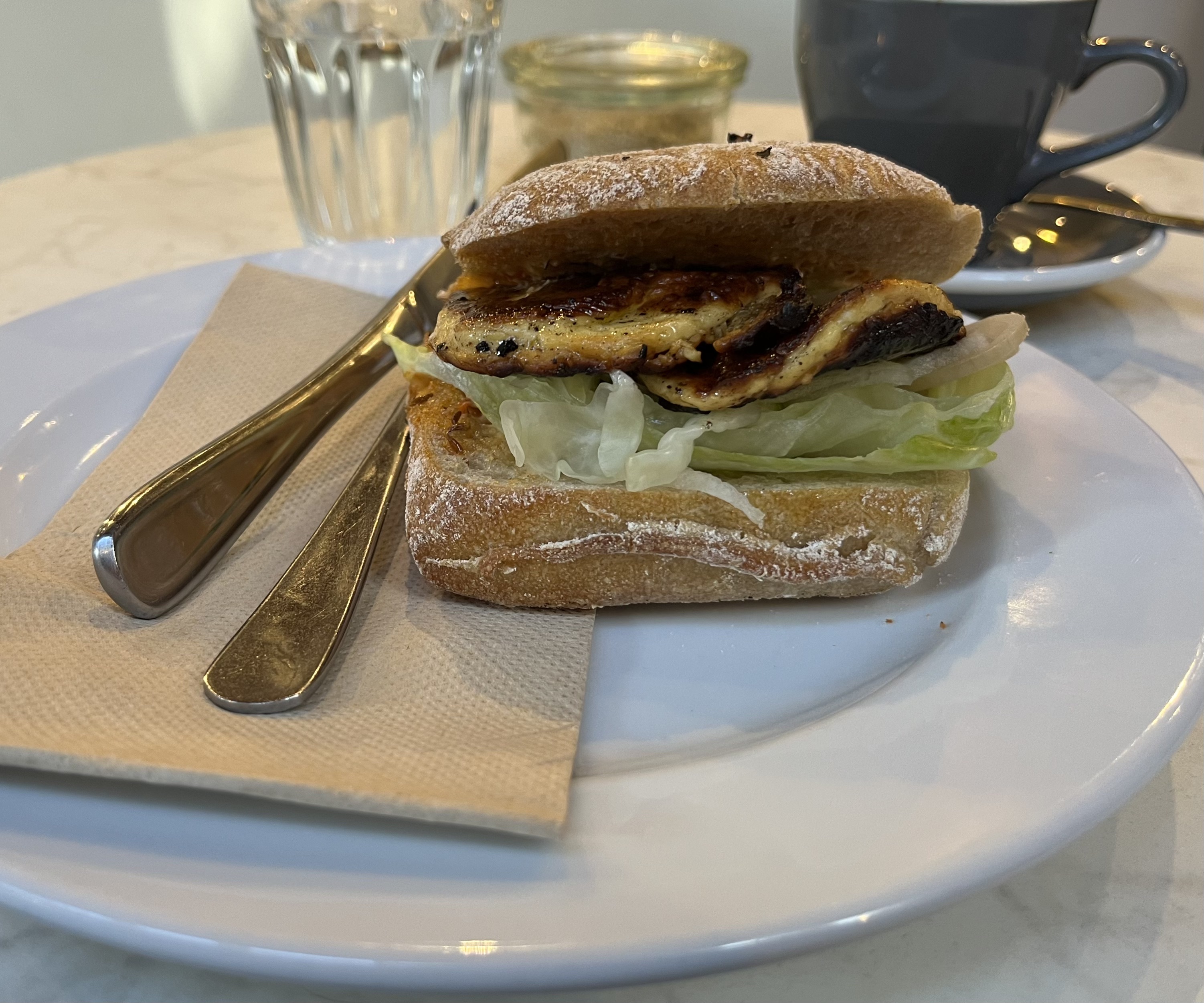 On Wednesday, after Pilates, I grabbed a sandwich at a favourite cafe, Shelley Bay Baker on Leeds Street. This time I had the halloumi, salad and very good spicy pickle on a ciabatta. On Friday I treated myself to Floridita’s green eggs and ham (poached eggs, ham, sautéed spinach and a parsley hollandaise). This is rich, satisfying and always really good.