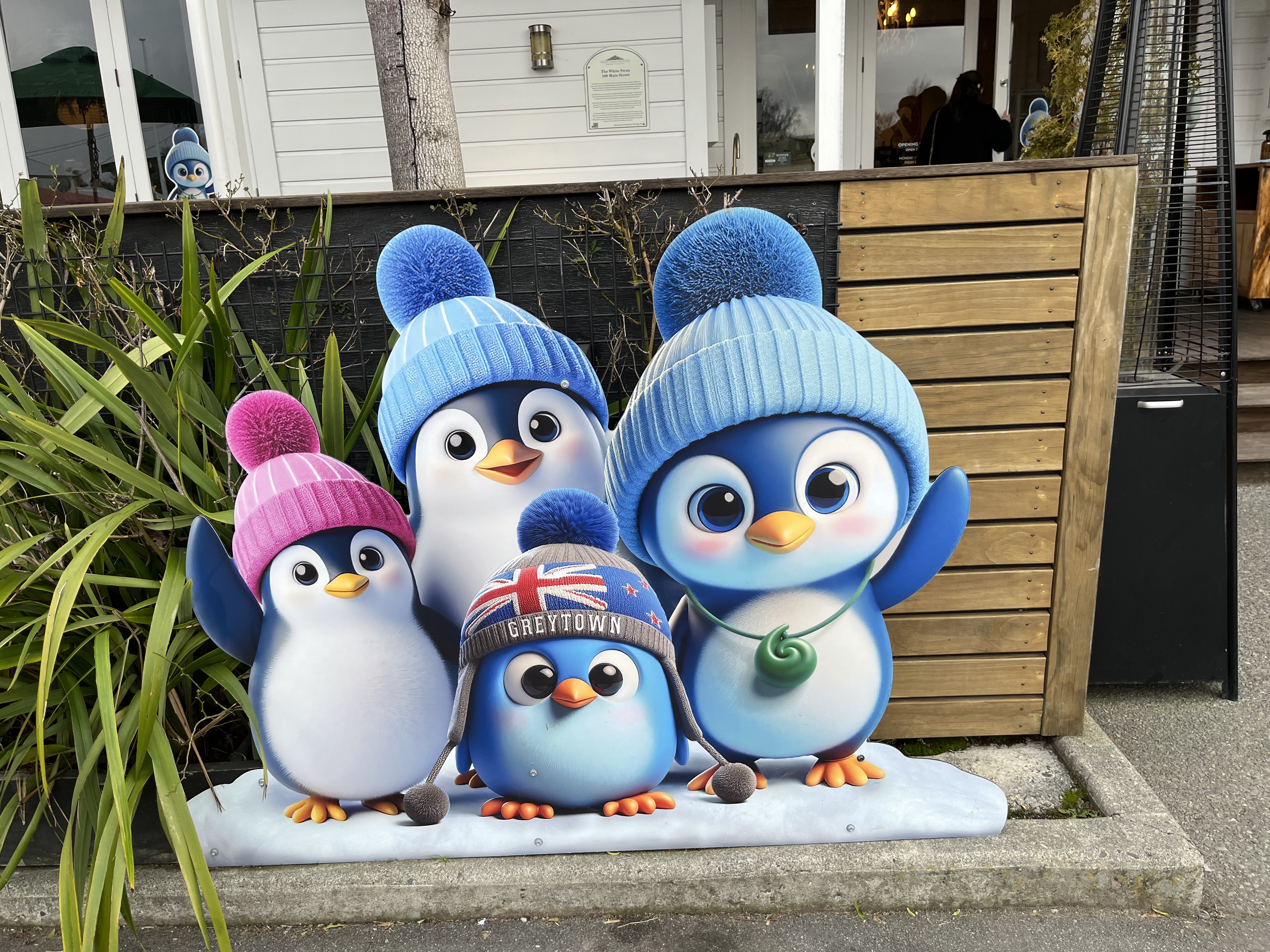 On Sunday, we headed over the hills to Greytown, for the last day of their ‘Christmas in winter’ month long festival. It was a rather grey day (the rain fell later) but it was still fun to see Christmas trees, lights and decorations. There have been all sorts of things on, from food trucks to artificial snow to music. If you look very carefully at the bottom left picture, you can just see Karl posing as a penguin…..