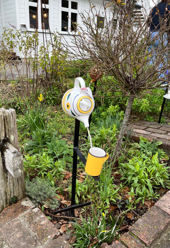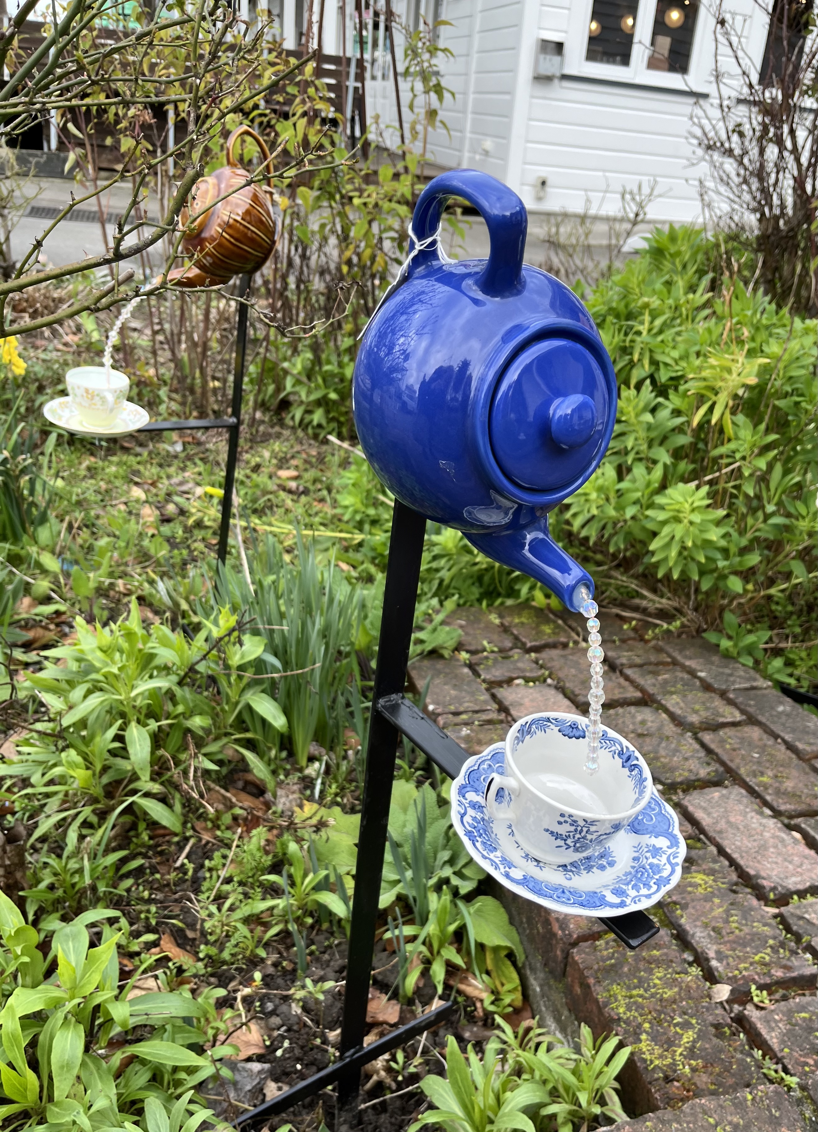 Recently I bought a solar “watering can” much like those teapots. It’s pretty at night. I may post it in my next blog.