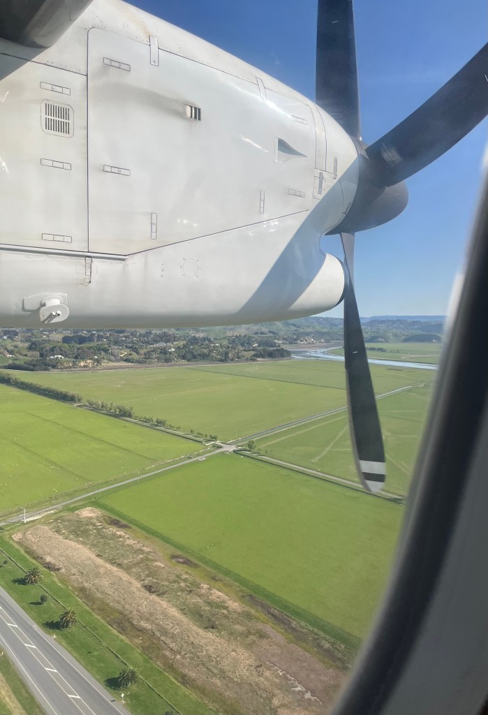 It was a lovely smooth flight, with water, a snack and one of the (in)famous Air New Zealand boiled sweets offered prior to landing. I was sitting in a window seat with a good view of the wheels on this trip as you can see.