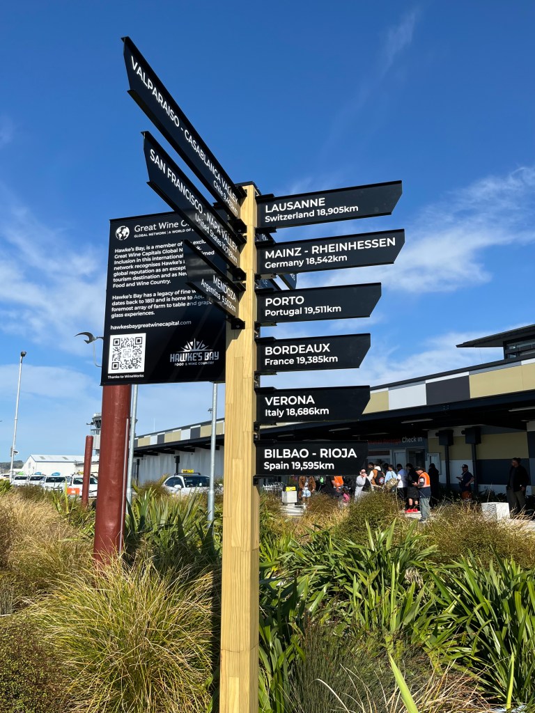 Outside the terminal building is this sign showing how far away we are and that the region is a member of the Great Wine Capitals Global Network.
