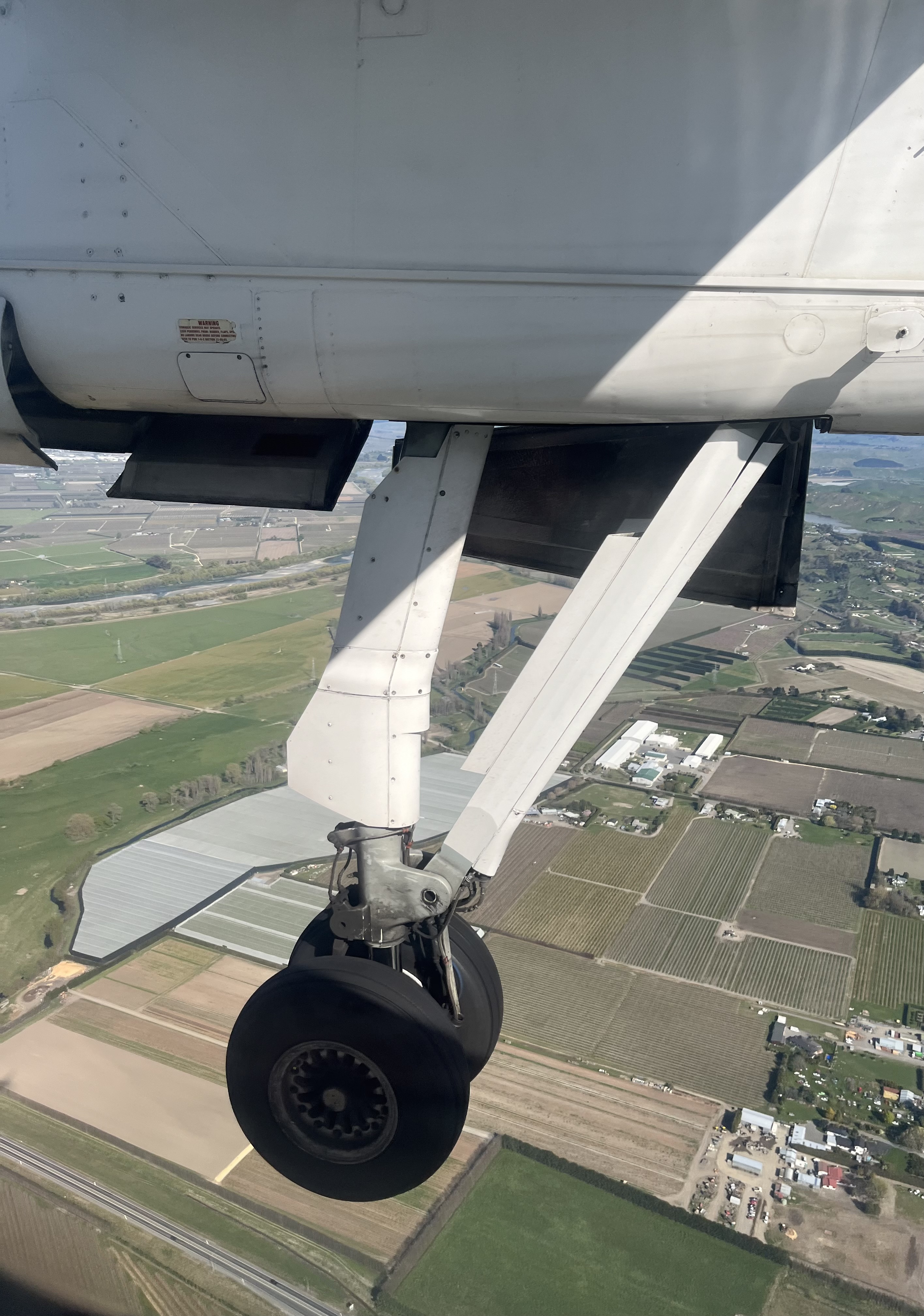 It was a lovely smooth flight, with water, a snack and one of the (in)famous Air New Zealand boiled sweets offered prior to landing. I was sitting in a window seat with a good view of the wheels on this trip as you can see.