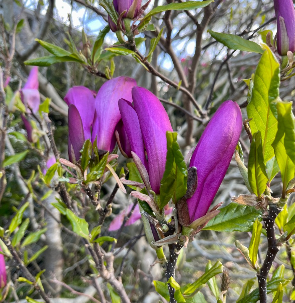 As well as enjoying the gorgeous local blossom, I also spotted more camellias and these stunning deep purple magnolia. Isn’t spring full of small pleasures?