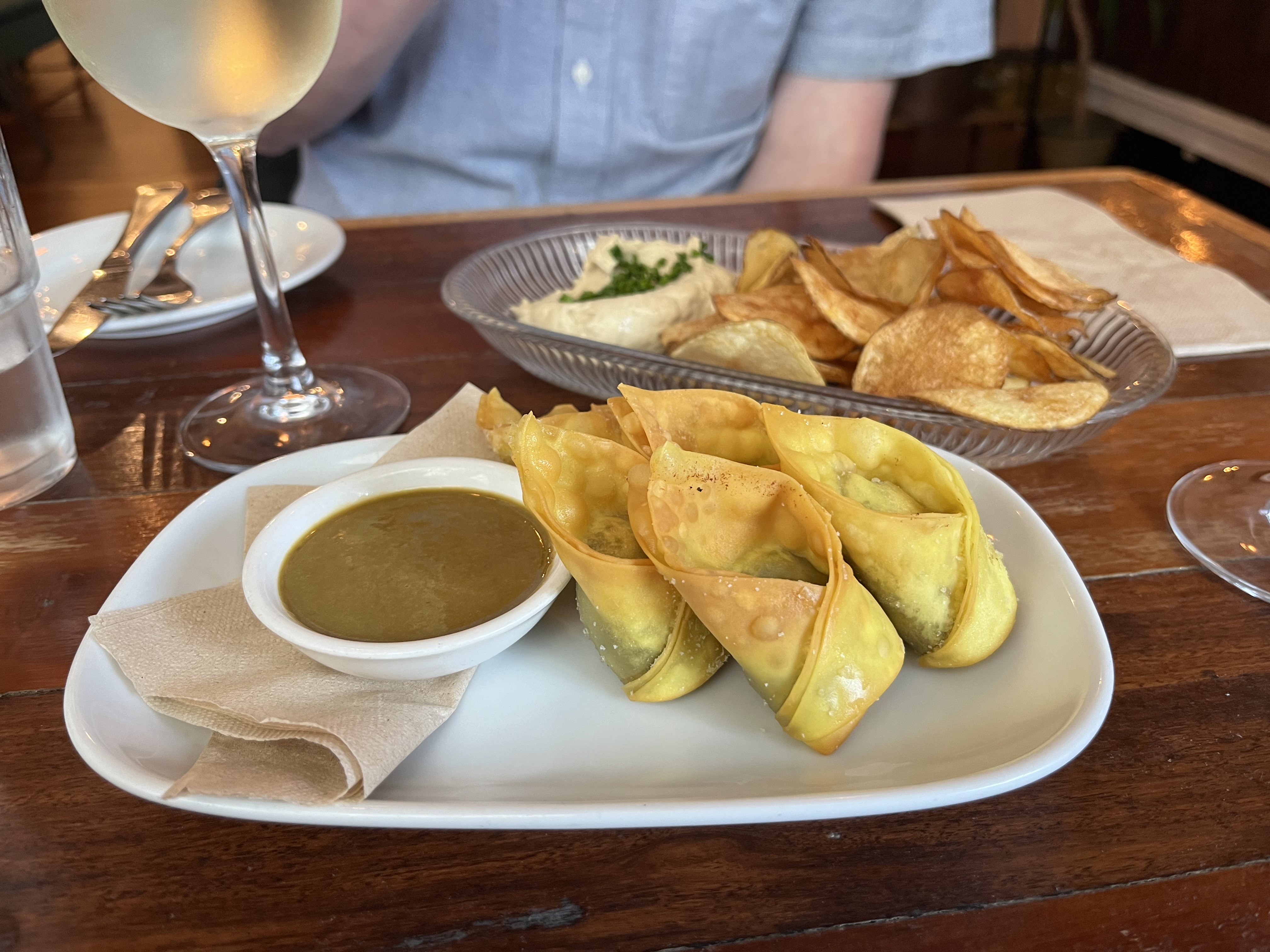 On Thursday, to help the transition into the long weekend, we headed down to Daisy’s in Thorndon for dinner. There is always some lovely sourdough bread with olive oil served to start, and then we shared their fabulous paua wontons and crisps with onion dip (a kiwi classic, though this one is a little bit more than reduced cream and onion soup powder!). Karl had one of their excellent steaks, and I had pasta with a lamb ragu, topped with a generous amount of parmesan. We also shared some asparagus. The food as always was very good, but a bit sad to find we were the only two people eating.