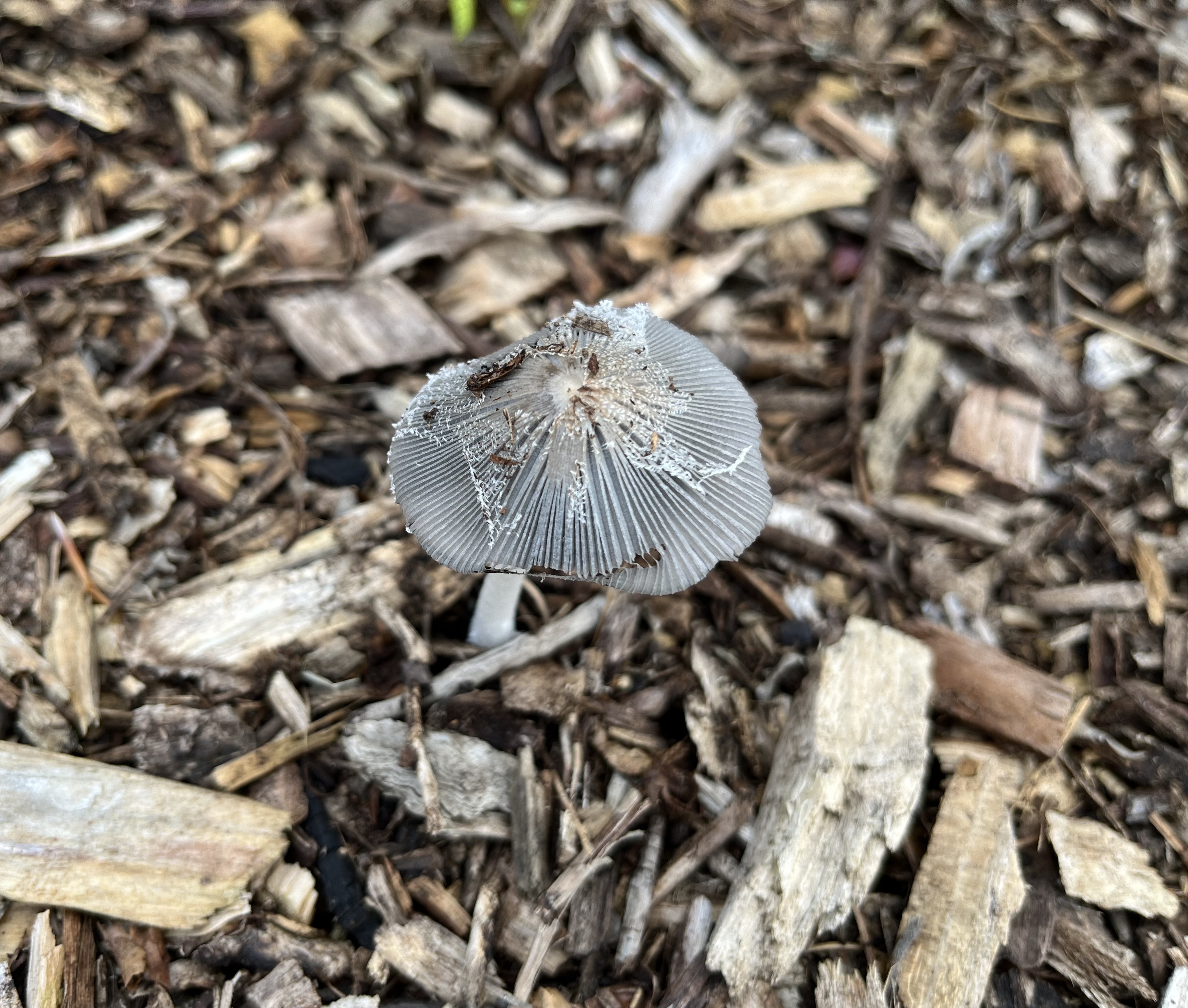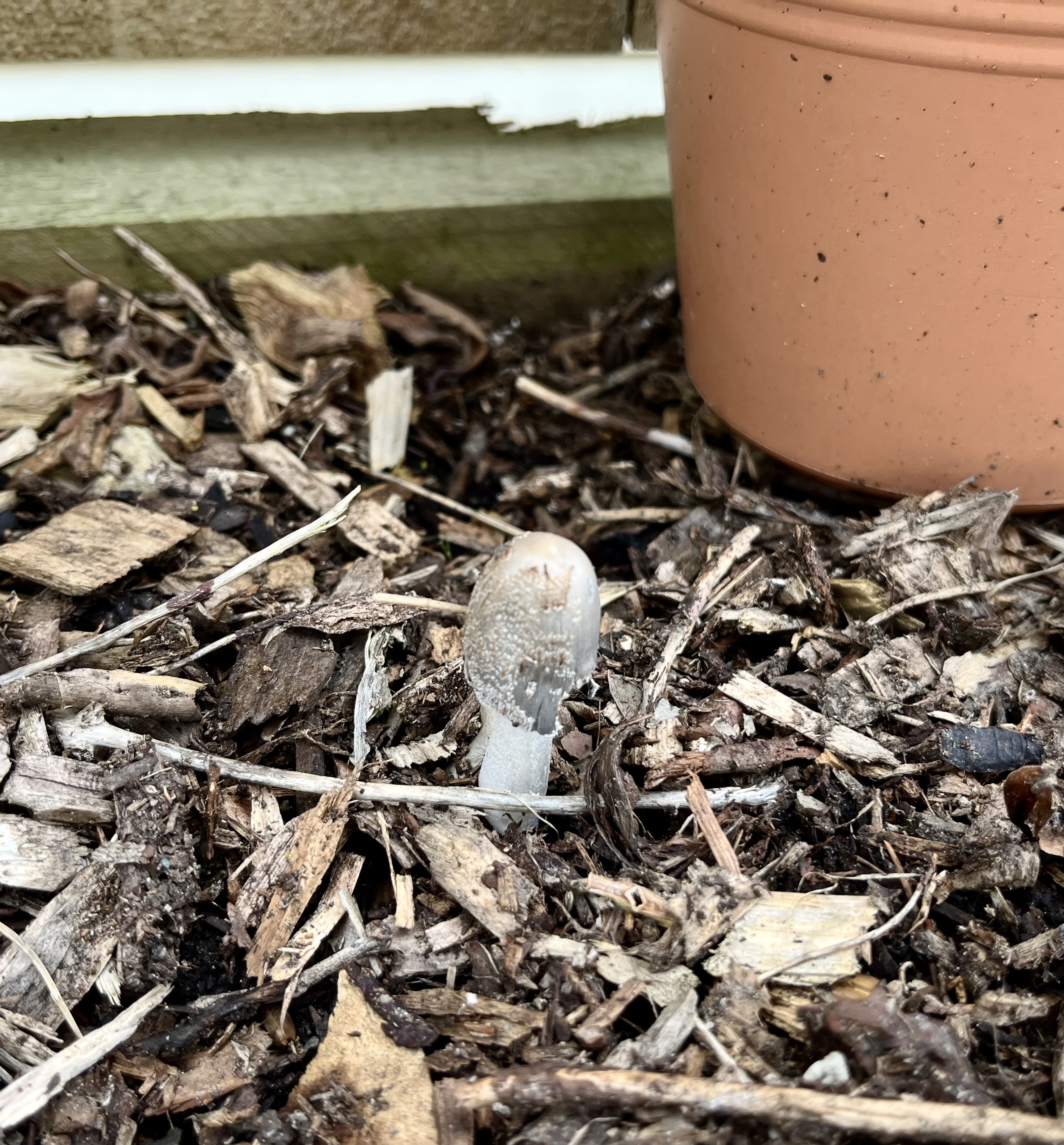 When I went out to hang the laundry this morning, I spotted these two little fungi that popped up over night.