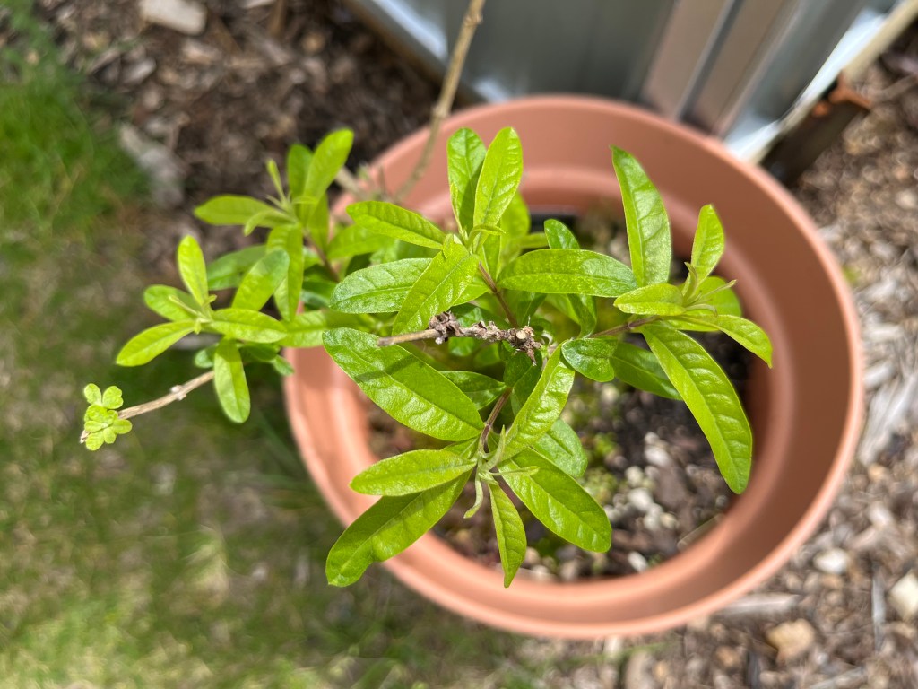 First up, the lemon verbena that came with us from the old house, to the next place and now here, but it has come to life again this spring.