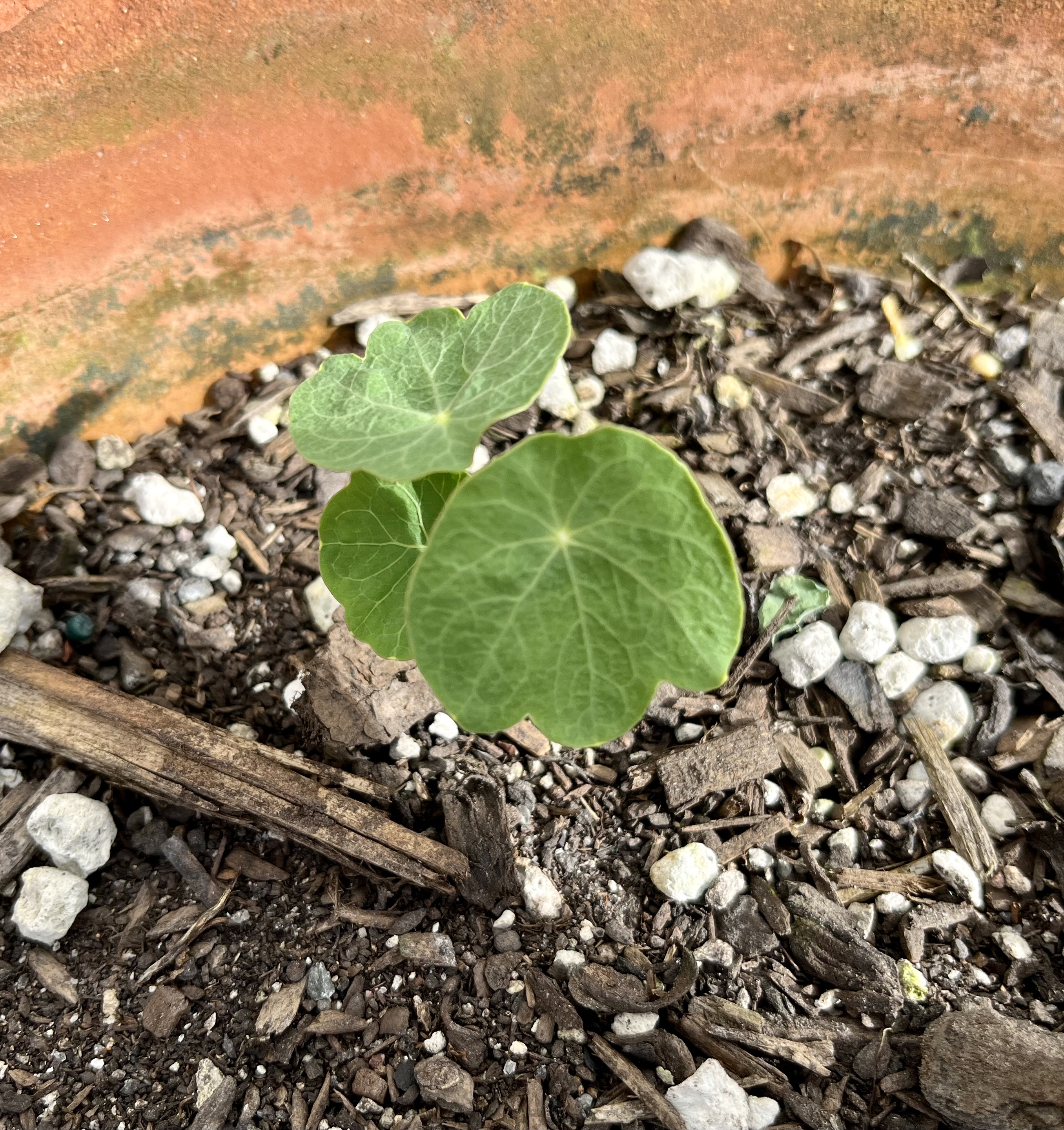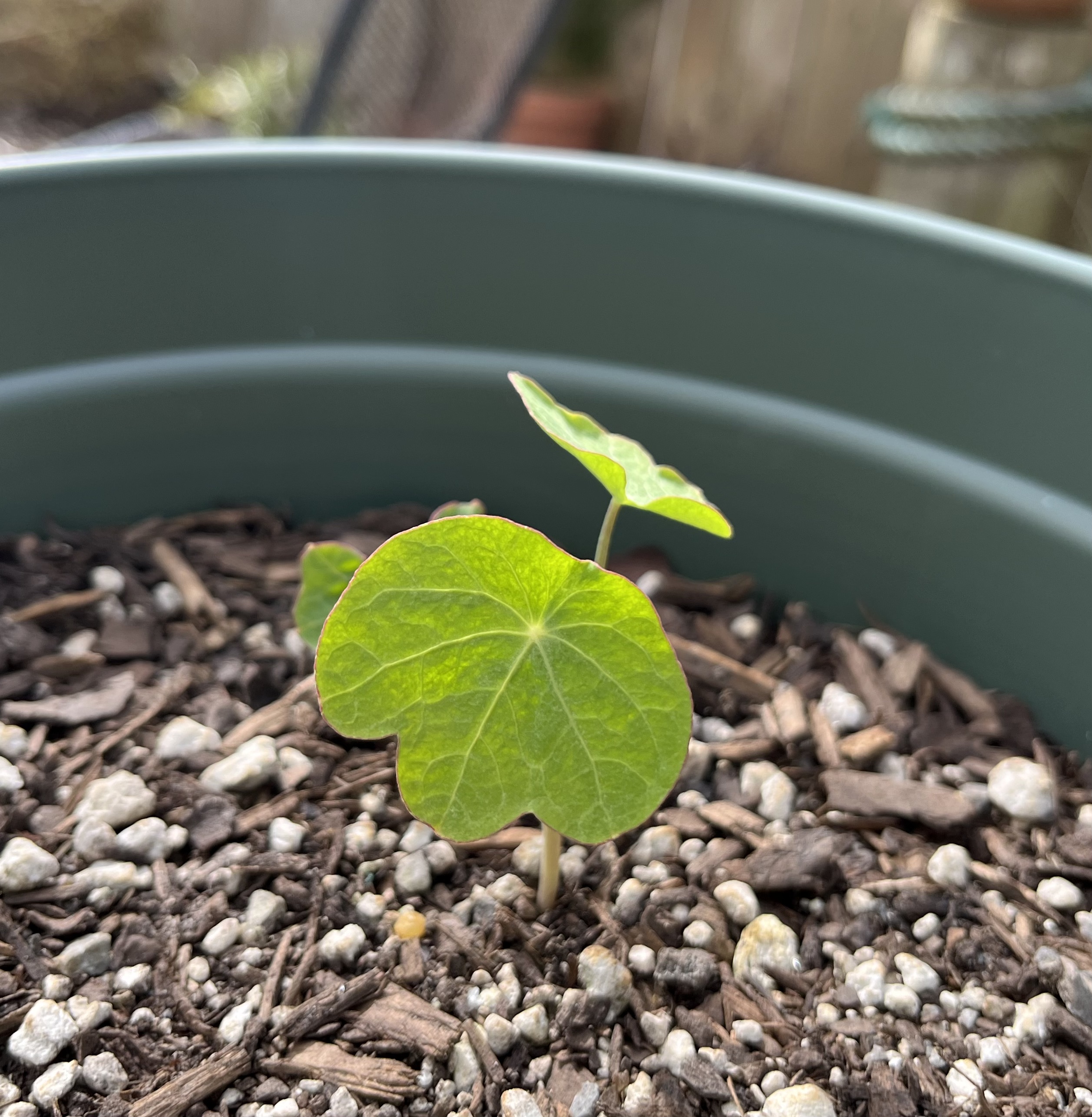 I planted a few nasturtiums the other week and happy to see them popping up and not being attacked by the blackbirds.
