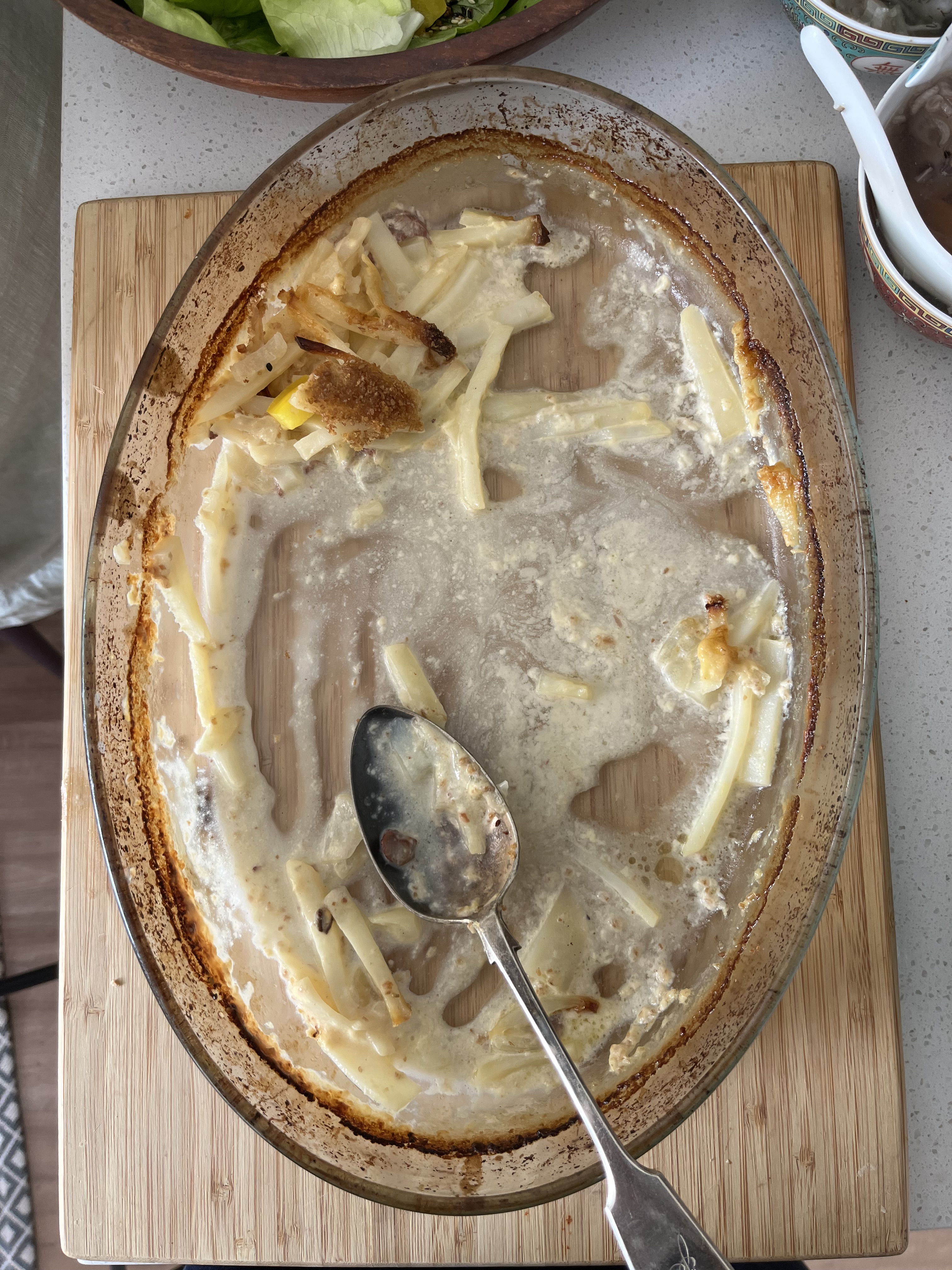 After a morning of peeling potatoes and slicing them into matchsticks for the Janssons frestelese, it was time to lay the table, put out the crackers and prepare the rest of the meal. There was four types of herring, little sardines, three types of smoked salmon, potatoes, meatballs, ham, salamis, sausages, a green salad, a cucumber salad, smoked salmon paté, devilled eggs and of course the Janssons (pictured almost finished below). There was Christmas cake, chocolate, a ginger cake made by our friend, chocolate and strawberries for dessert. And of course beer and snaps!