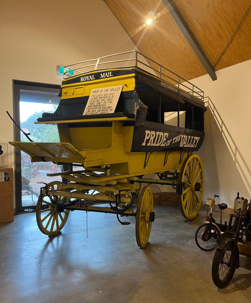 The exhibition building is an introduction to the village with background to the early settlers (including some from Scandinavia) and how Greytown developed. The coach below was built in nearby Martinborough in 1906 and used on the Martinborough to Featherstone railway link.