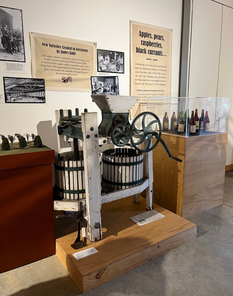 The cider press reflects the fruit growing industry of the region. The poster above is about the ‘Gala’ apple, which was bred in Greytown, and can now be found as the well known ‘Royal Gala’ apple.