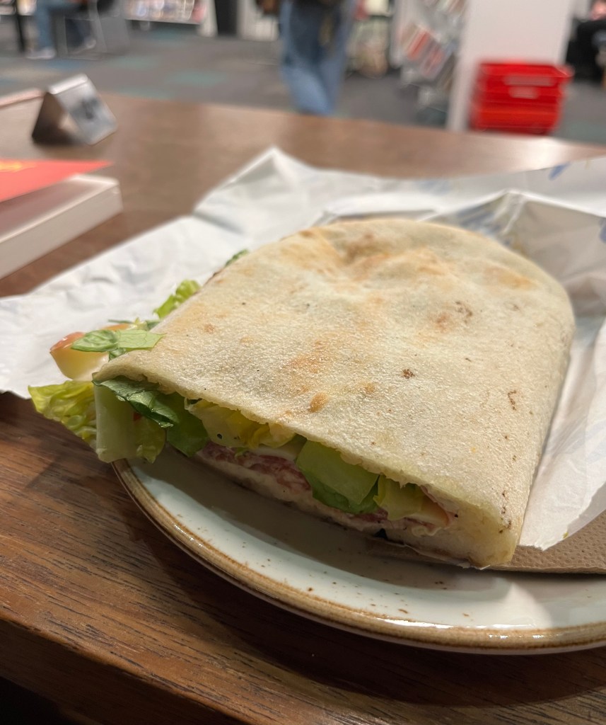 On Wednesday, I had lunch at Squirrel again, with a repeat of their excellent chicken sandwich. I popped over to the café at the library in town on Friday and had the salami, cheese and salad sandwich (it is a normal size!) and took a welcome break from my desk.