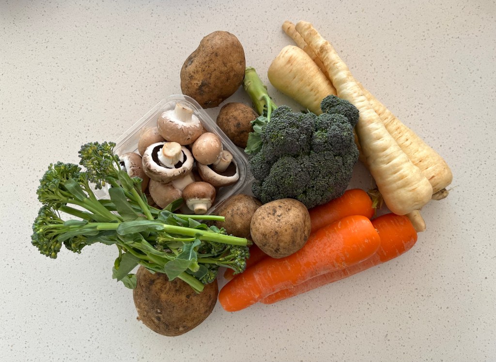 The Wonky Box delivered up mushrooms, potatoes and carrots – always welcome, parsnips, a bag of baby spinach and a squashed lettuce and some fine stemmed broccoli and a small head of…broccoli. As much as I like the vegetable it does seem a little excessive! Anyway, I added some asparagus, golden baby beetroots, mandarins, and then lamb, chicken and sausages as well as a few other things.