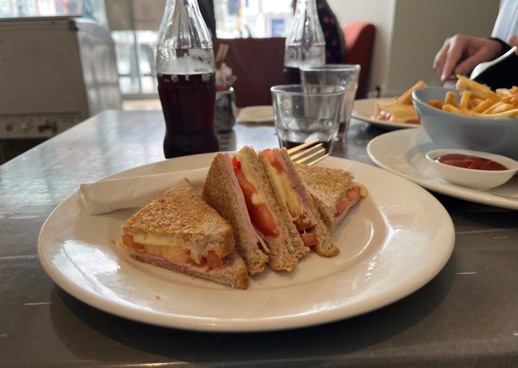 After the cheese scone with Jo I wasn’t particularly hungry come lunch time despite a very virgorous Pilates session, so just had a bowl of leek and potato soup at one of our local cafes. I found some lovely Danish style rye bread which I used to make cheese and coleslaw sandwiches for work on Thursday and hummus and cucumber ones on Friday. We treated ourselves to toasties and shared a bowl of chips on Sunday at the cafe next to the library – they do make excellent ham, cheese and tomato toasted sandwiches.