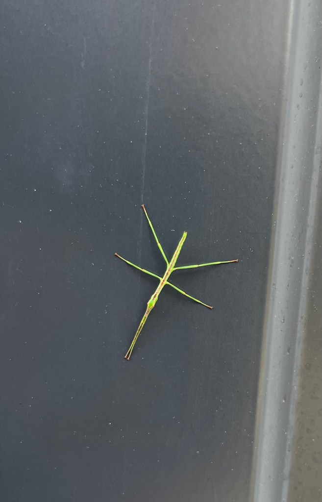 Anyway, the other pot of tulips has flowered – see the featured image at the top of the post. Lovely to see the pops of red in the garden on a dull day. Also spotted….this bright green stick insect on the front door and these pretty looking fungi.