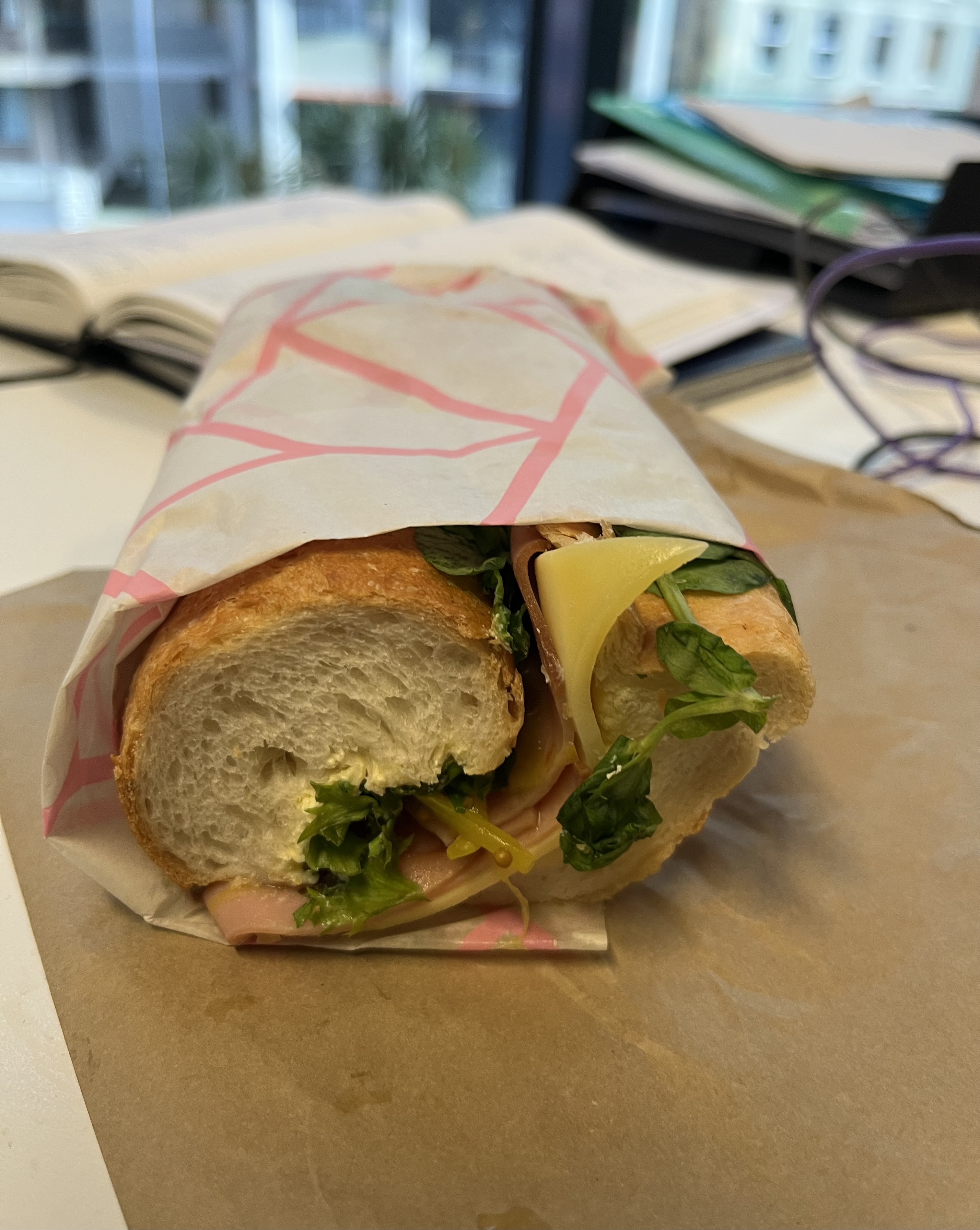 On Wednesday I popped into Bond Street Deli for one of their fabulous tuna salad bagels, so full of flavour and masses of filling. A first class lunch! In the office on Friday I had a ham, cheese and pickle sort of baguette (the bread was nice but not the right sort) from Dough Bakery. I also had a packet of crisps with it because, you know, it was Friday.