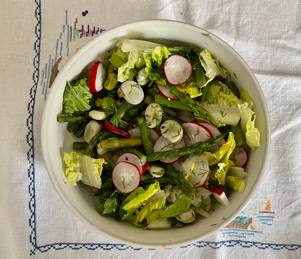 There is a lot of gorgeous produce about right now, and I made a salad based on one in Peter Gordon’s Savour with broad beans, radishes, asparagus and lettuce along with dill and a good dresssing. Much needed healthy eating at this time of year! We’ve been watching the oil rig drama Rig 45 which also gives me language practice in Danish, Swedish and Norwegian 🙂 We also watched more of The Hack and the Australian political drama Total Control.