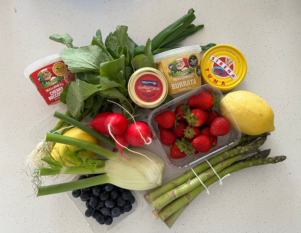 There was no Wonky Box this week – partly as we have lots of social things coming up this week. We got a bunch of beautiful radishes, fennel, asparagus, spring onions, lemons, burrata, bocconcini, some lumpfish roe (for Christmas Eve), tuna, blueberries and raspberries as well as a bag of rocket and venison burgers for a quick but tasty dinner next week. I got beef mince for a chilli and some lovely tarakihi (a fish) from our local butcher, who always has fresh fish on Fridays.