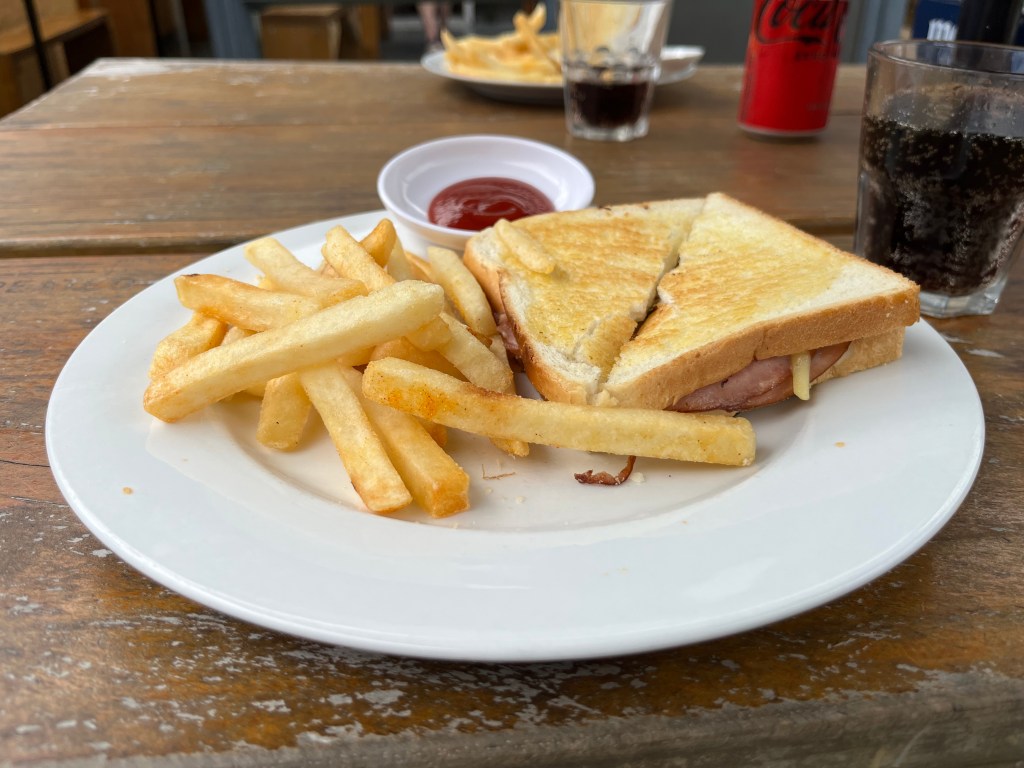 When on holiday, it is time to enjoy things to the full. When we go up to Hawke’s Bay we usually stop in Woodville for lunch, enjoying ham, cheese and tomato toasties with a side order of chips at Wood Farm Cafe. Just the perfect thing for a road trip. We had excellent toasties too in Havelock North at Maina, with me opting for the roast beef (when did I last have a roast beef sandwich?) and Karl the classic ham and cheese.