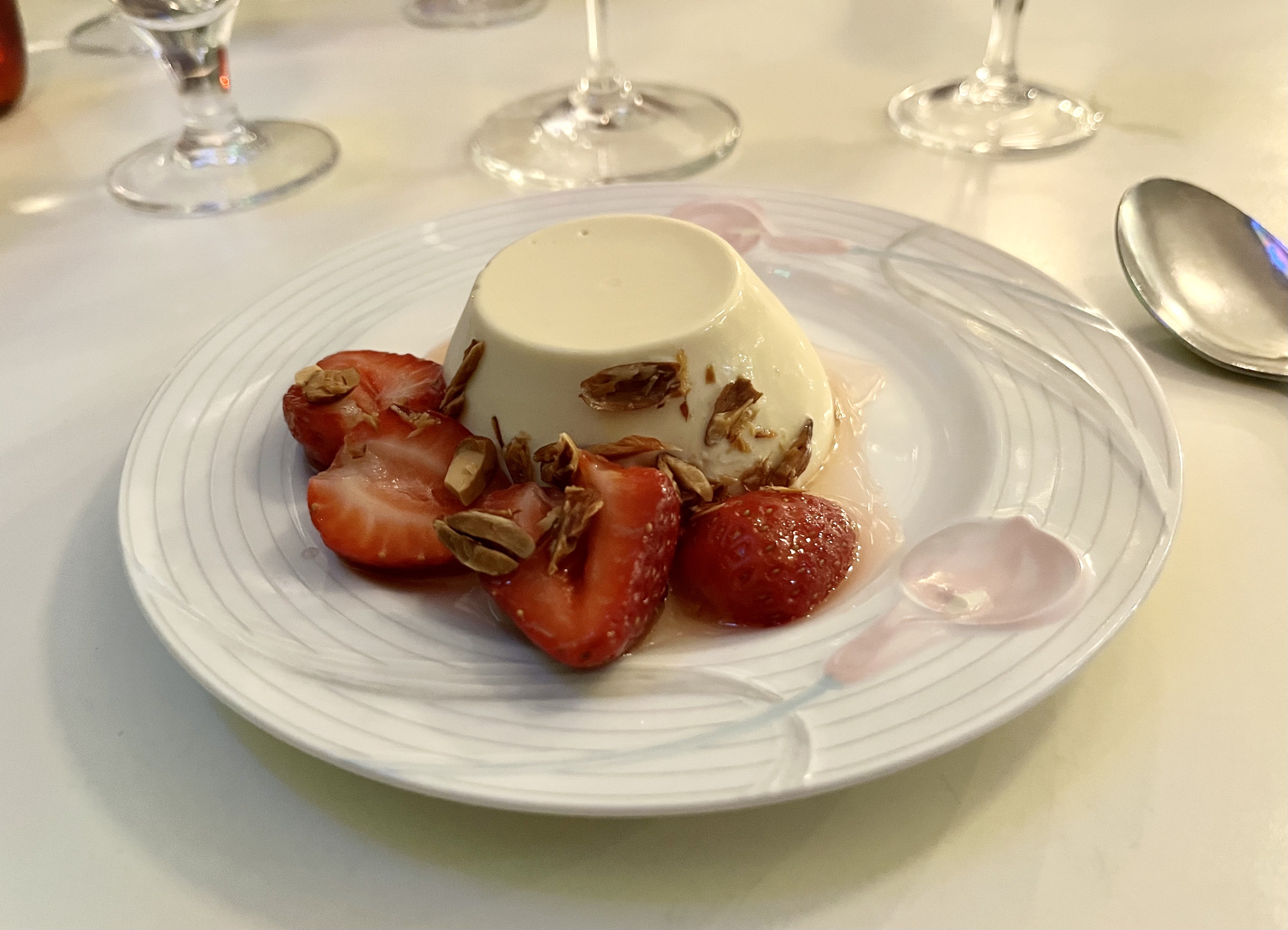Wednesday was both Karl’s name day and our arrival in New Zealand, 13 years ago. To celebrate both of these events, we headed out for dinner to perennial favourite, Ortega Fish Shack. I had, as usual, the yellowtail kingfish ceviche with avocado, lemongrass, Vietnamese mint and crayfish oil to start while Karl had the duck liver pate with fig preserve, which I can tell you was excellent as I did try a bit. We drank the house chardonnay. I then had the steamed moki with a ‘green sauce’, boquerones (those little white anchovies) and roasted cauliflower which was such a wonderful mix of fresh flavours. Karl of course had steak frites. We shared a very good green salad, and each had a glass of red wine from Lebanon. For dessert I had bush honey panna cotta with strawberries and almonds accompanied by Château Jolys Jurançon dessert wine and Karl the Catalan crepes with orange caramel sauce and vanilla ice-cream and a glass of Alvear Moscatel. A wonderful evening!