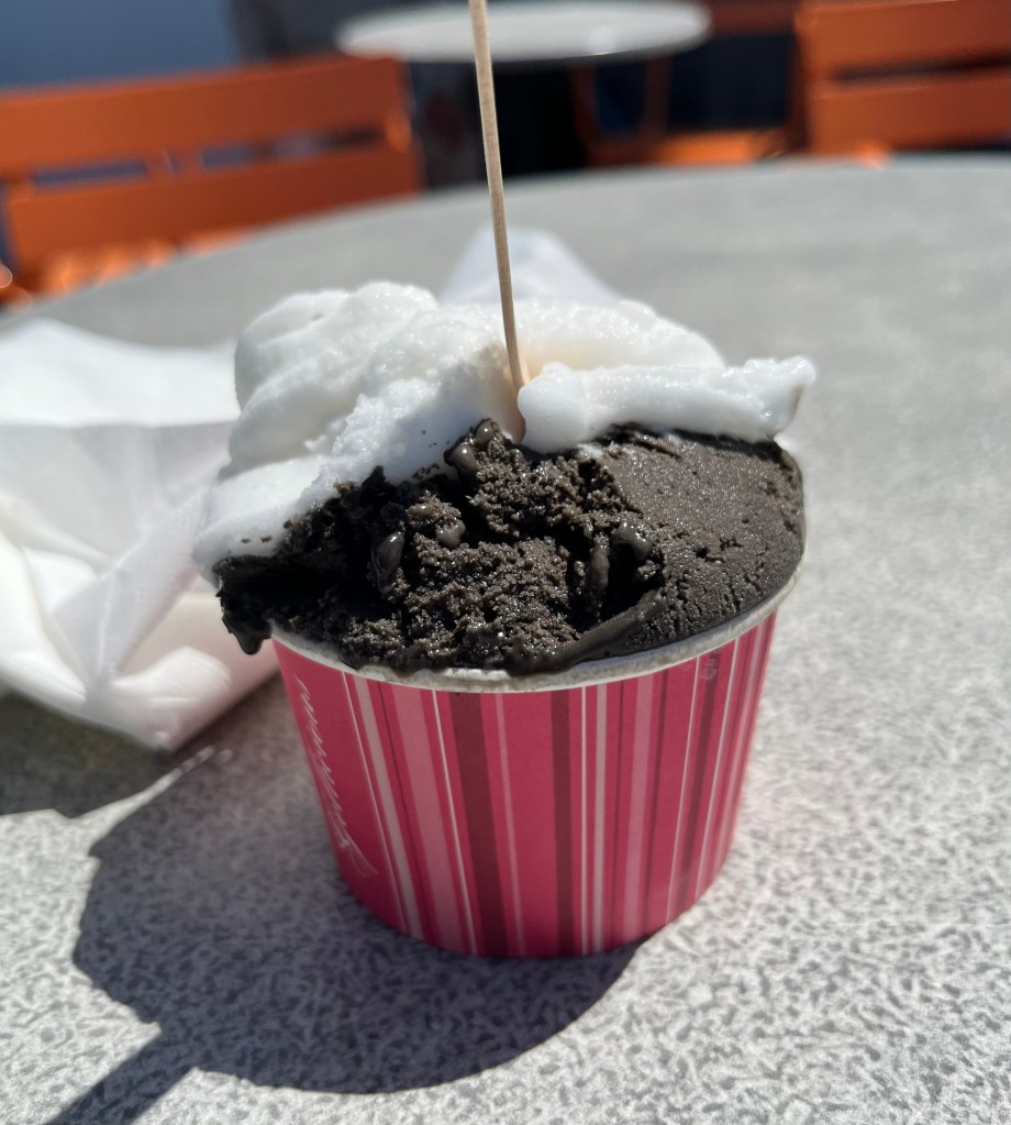 - Enjoying gelato on my Friday lunch time walk. The flavours are liquorice and lemon.