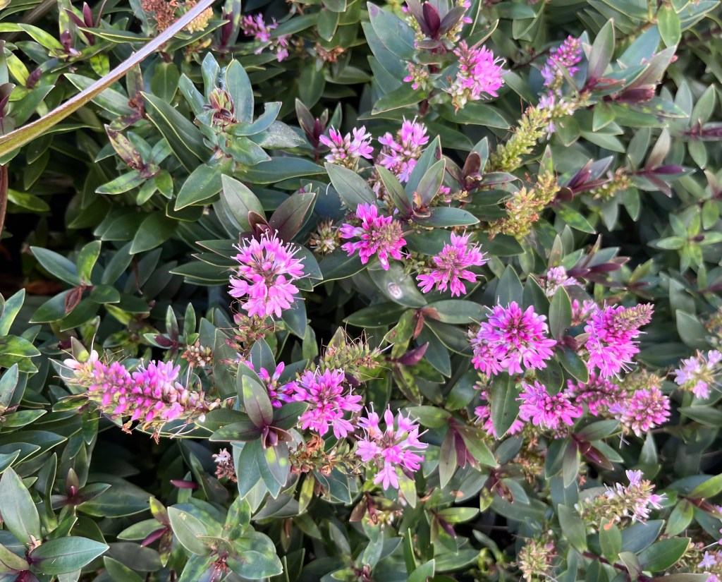 As John Denver sang, the bags are packed and I’m ready to go. All being well, we will get to Hamburg – 25 hours flying plus all the time in between flights. Travelling life for those who live in New Zealand! Let’s just say it takes us a day and a half to get to Europe. Anyway, there was time to enjoy the hebe in the garden in between packing, cleaning and resting.
