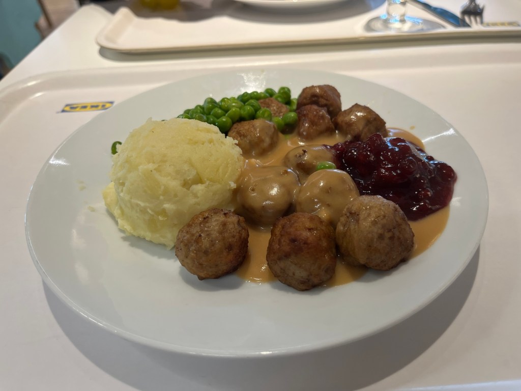 The day we arrived, Tuesday, we were exhausted and stressed and with that special ‘brain fog’ one has after long haul travel. There is a small IKEA not far from where we are staying, and Karl suggested going to the cafe for meatballs. I did not say no as what better comfort food is there?
