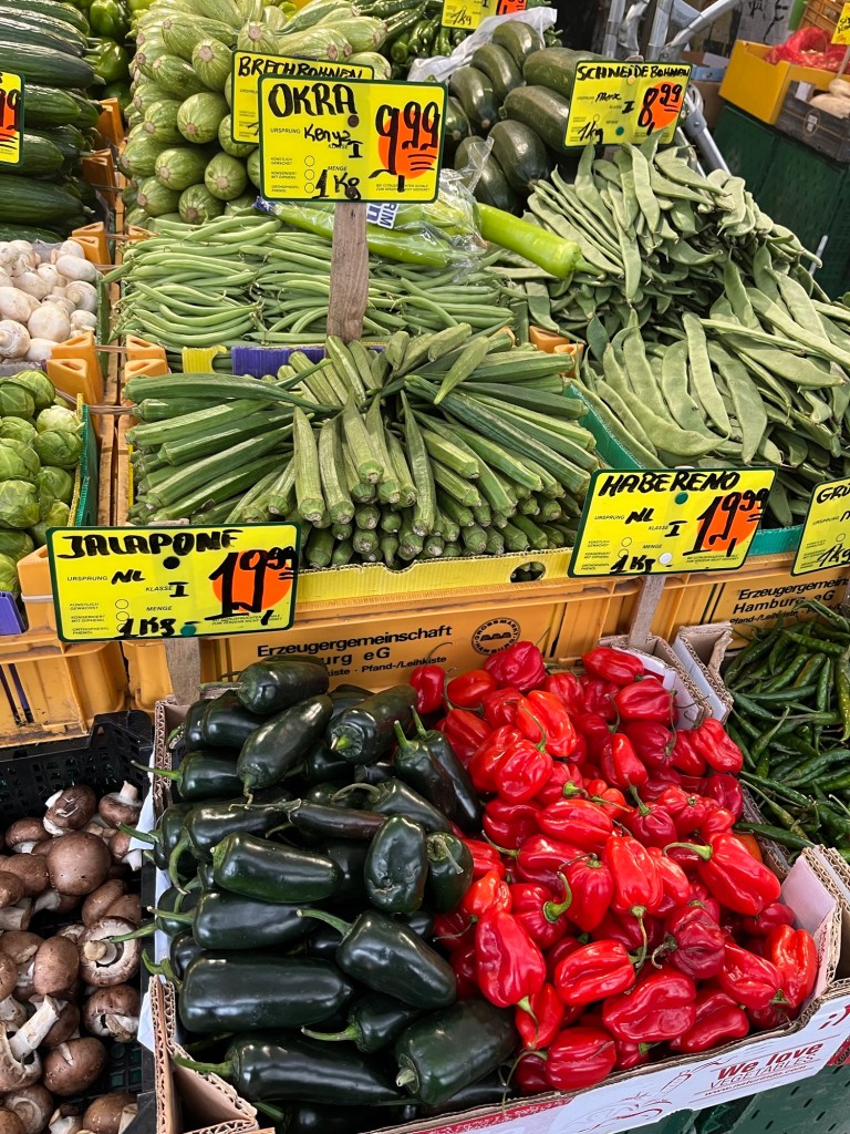 I found a fabulous greengrocer and Turkish food store, with these very neat peas, okra and green beans. It is the sort of shop you could spend ages in, but I keep reminding myself we are only here for a few weeks so not worth stocking up on all sorts of things.