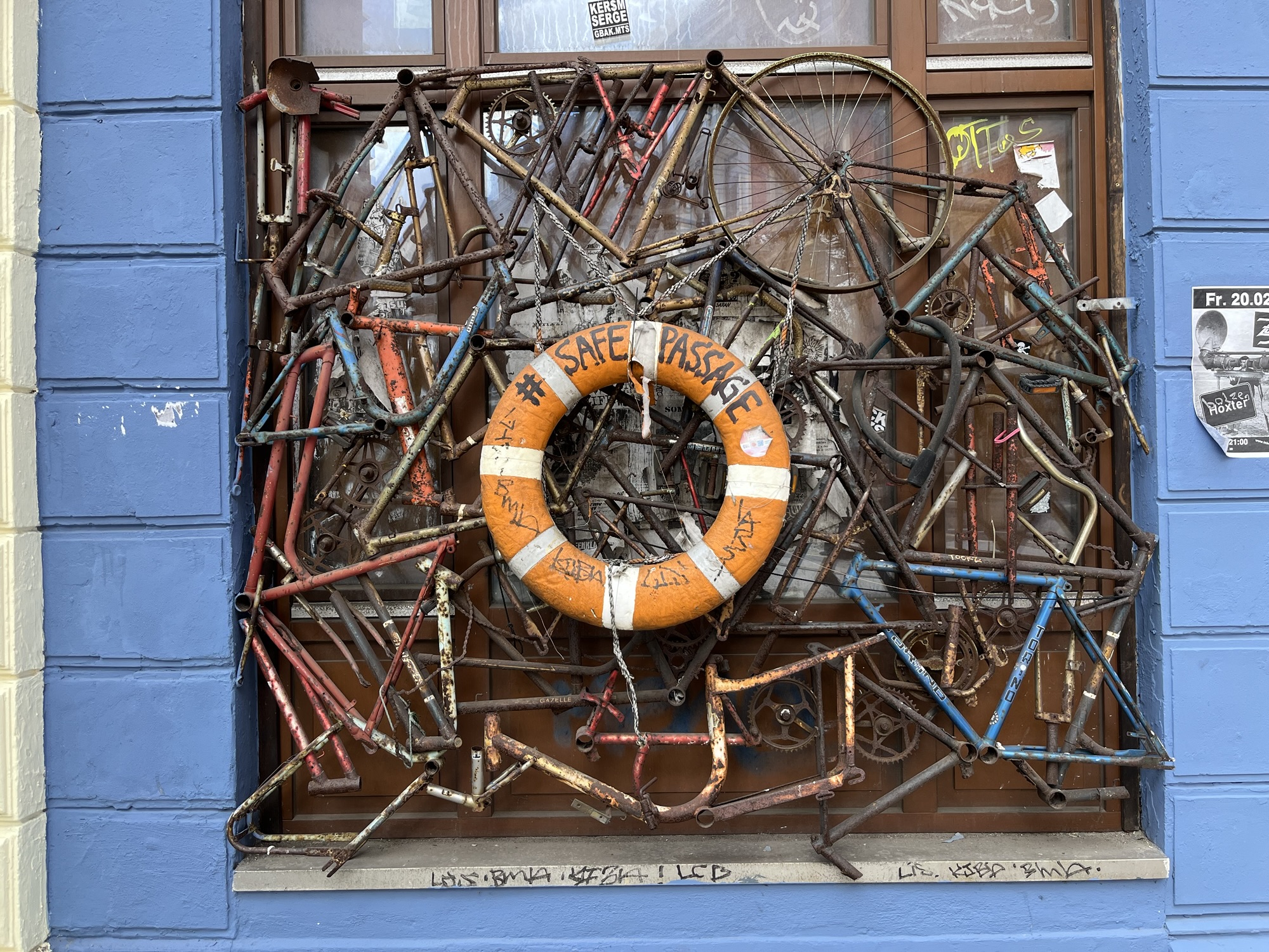 Anyway, we continue to carry out daily tasks, but as even just going to the local shops can be an adventure (what sort of bread to buy? Should I try a different type of mushroom – though having just listened to The Mushroom Tapes I am not so sure! When will local asparagus appear (I so want to have some of the white asparagus Germany is famed for)? In the meantime, every corner has something interesting, like this window installation below.
