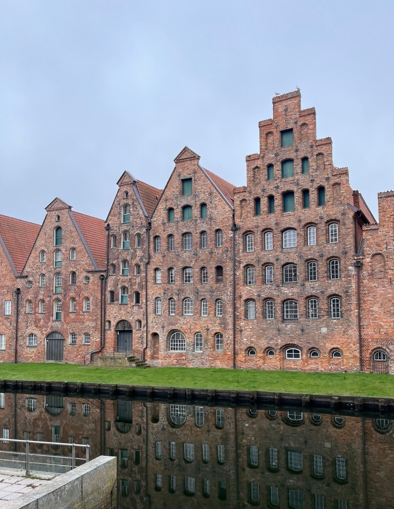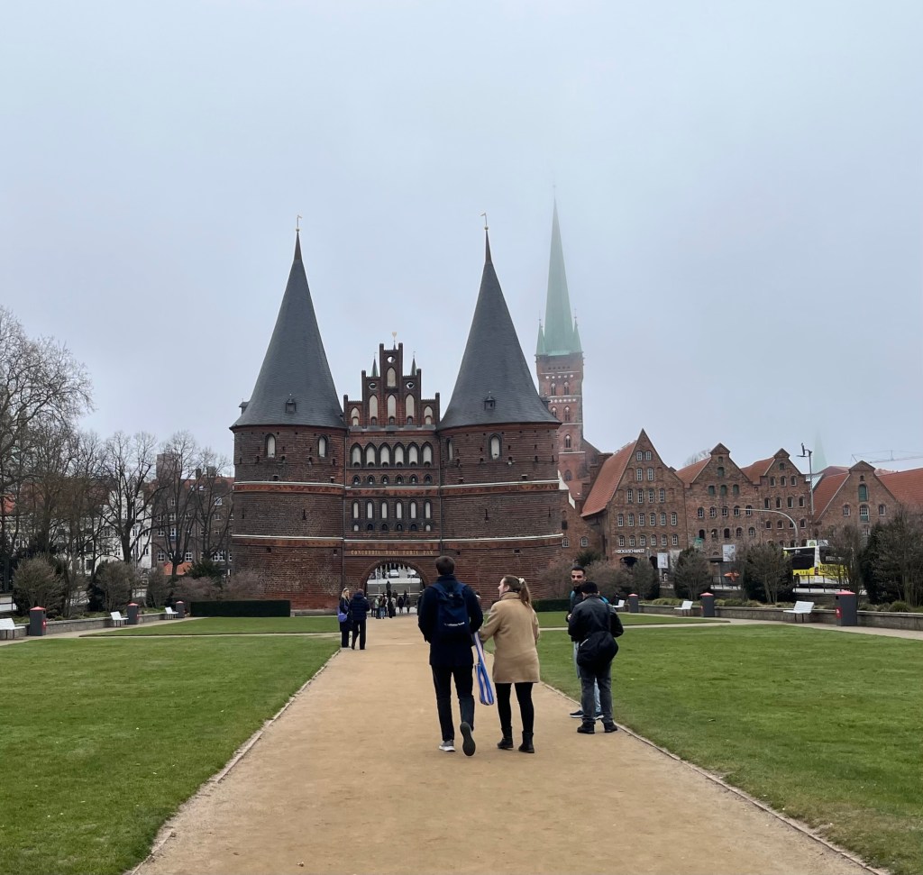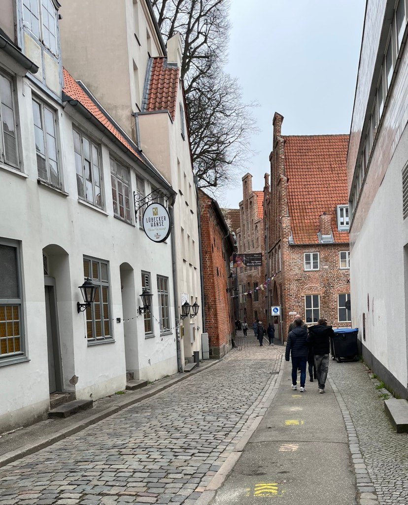 On Wednesday, we headed over to Lübeck, a 50 minute train journey from Hamburg Central Station. It was a city we both wanted to visit with its historic importance for the Baltic region of Europe. I so rarely travel by train now, that it was fun to people watch my fellow travellers: the young woman carrying a cello, a man walking briskly armed with a fishing rod and suitcase, and a man whizzing along the opposite platform in a wheelchair.